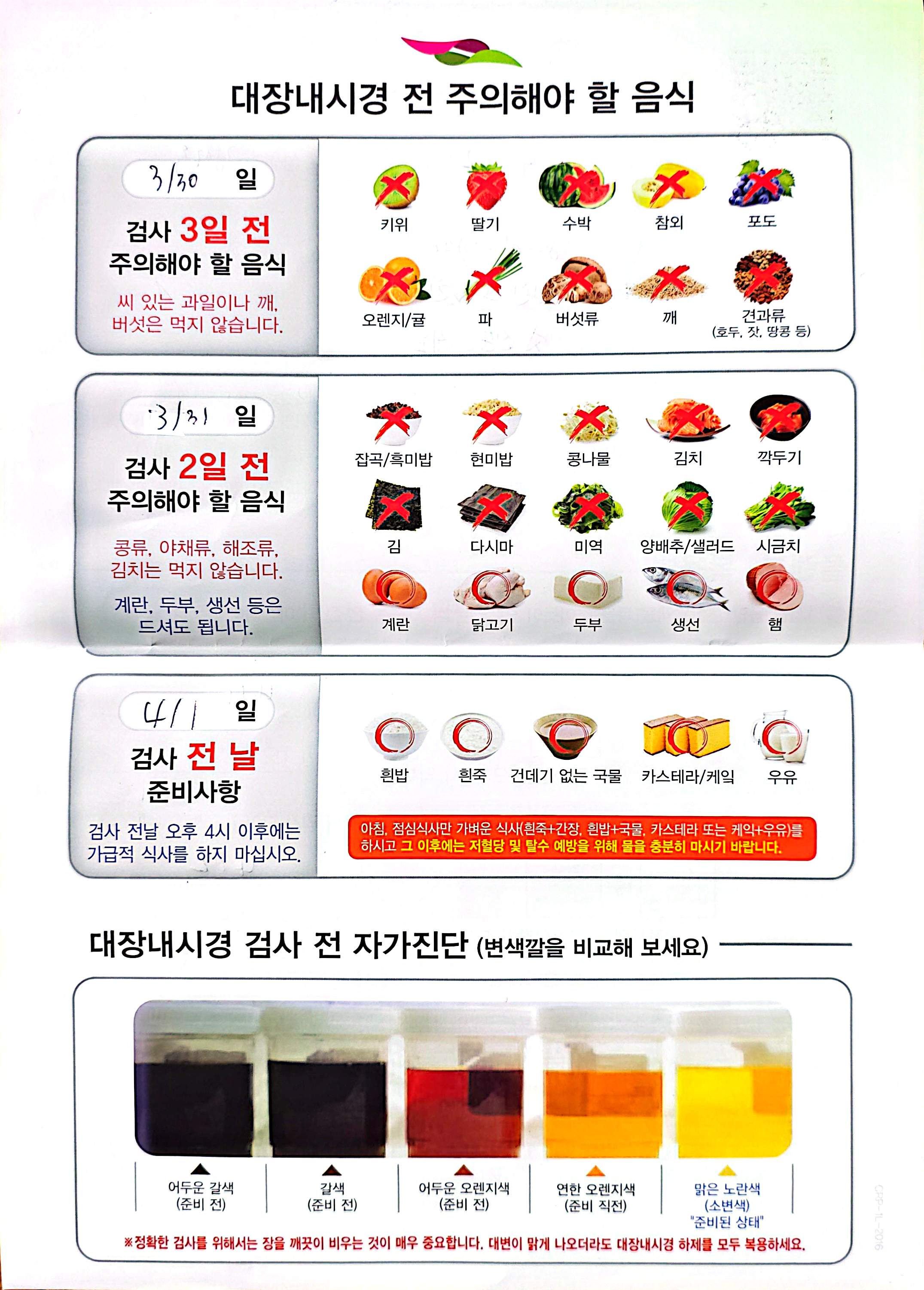 검사 전날에는 금식 지침을 반드시 따라야 한다.