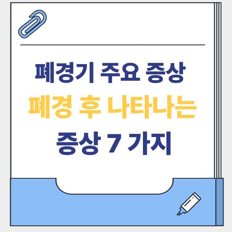 폐경기 주요 증상과 폐경 후 나타나는 변화는 많은 사람들이 겪지만 제대로 이해하지 못하는 경우가 많습니다. 특히 폐경 후에는 몸의 변화가 더 뚜렷하게 나타나기 때문에 미리 알고 대비하는 것이 중요합니다. 이번 글에서는 폐경기 주요 증상과 폐경 후 나타나는 증상 7가지, 그리고 관리방법까지 자세히 정리했습니다. 건강한 일상을 유지하는 데 도움이 되는 내용을 담았습니다.